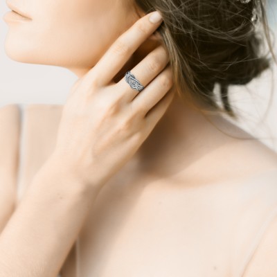 Knot of Hercules Ring, 14K White Gold, Oxidized Finish